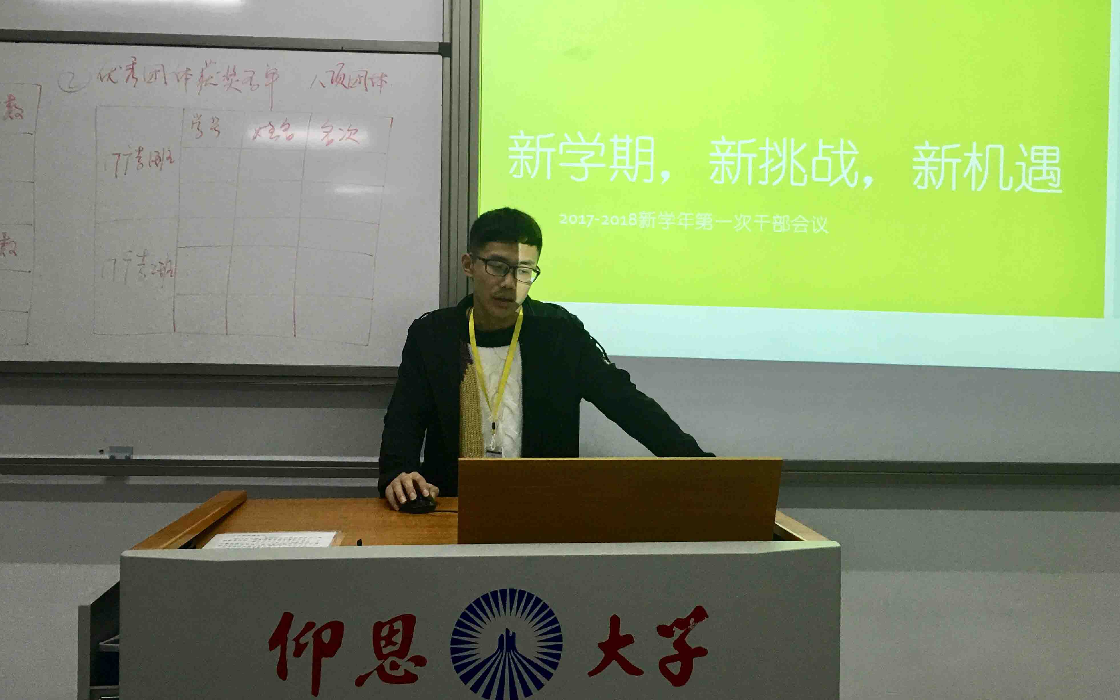 3月6日晚,beat365正版唯一官网必一学生会在仰恩楼C2-305召开本学期的第一次干部会议。会上,指导老师李少聪和学生会主席吴志伟安排了各部门本学期的工作任务。各部门部长也依次对本学期的工作做出规划。李少聪老师希望beat365正版唯一官网必一学生会能够更好地为beat365正版唯一官网必一师生服务。