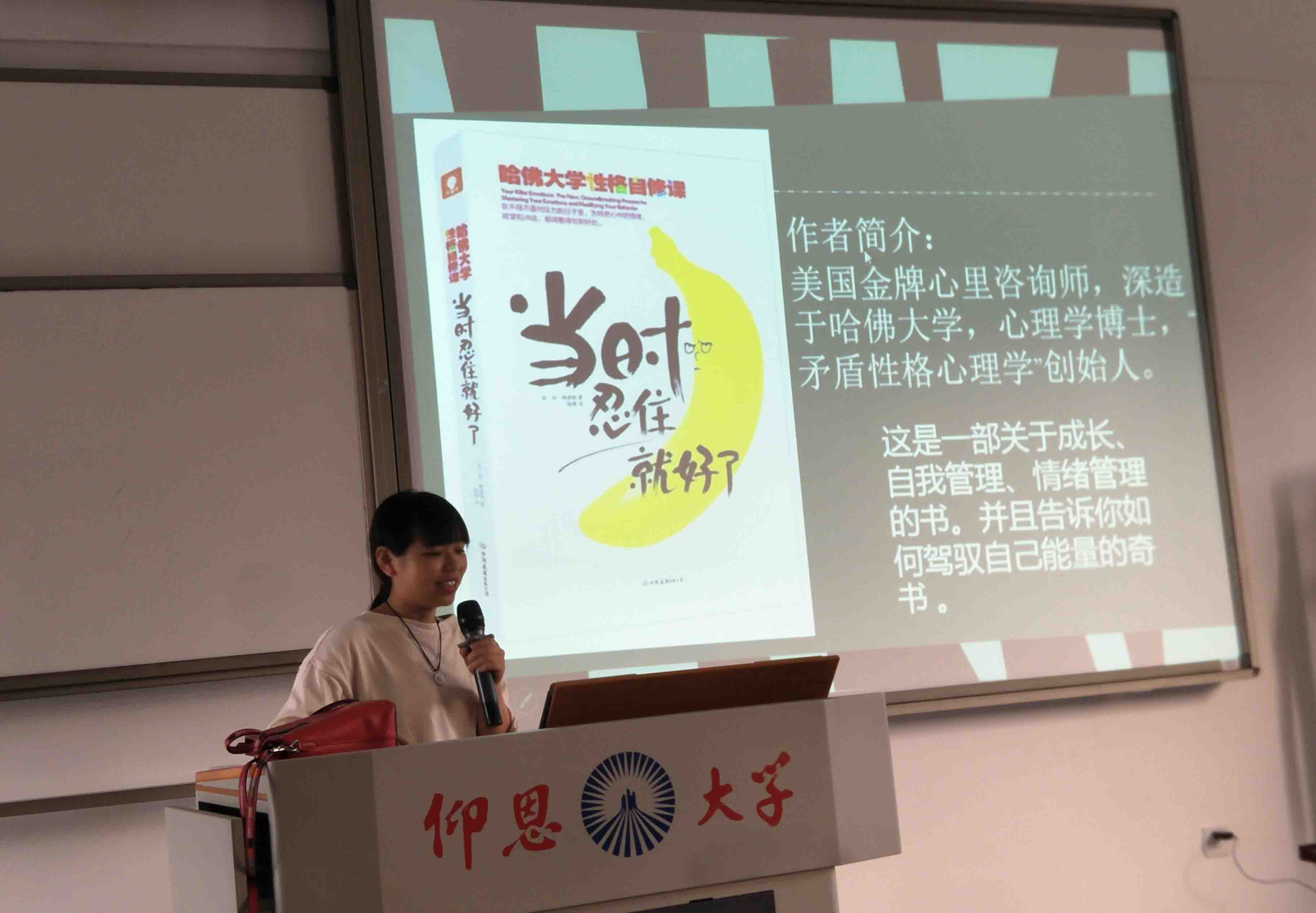 在本次分享会上先后有10位同学进行了读书分享,分享的图书题材丰富多样,有国内外的小说、心理学方面的书籍以及专业课方面的书籍。例如邱华跟大家分享了余华的小说《活着》,告诉我们要能够应对生活中的意外活出自己精彩的人生;杨佳敏跟大家分享了《姐姐的守护者》,从人性的冲突中,帮助我们意识到了爱的伟大;罗霞跟大家分享了心理学著作《当时忍住就好了》,告诉我们在面对一些不如意的时候怎样更好地调节情绪;林嘉敏通过一幅幅图片告诉我们人为什么要读书……此次活动的开展,同学们收获良多,加深了同学们爱读书、爱学习的良好意愿,达成了本次活动的初衷。