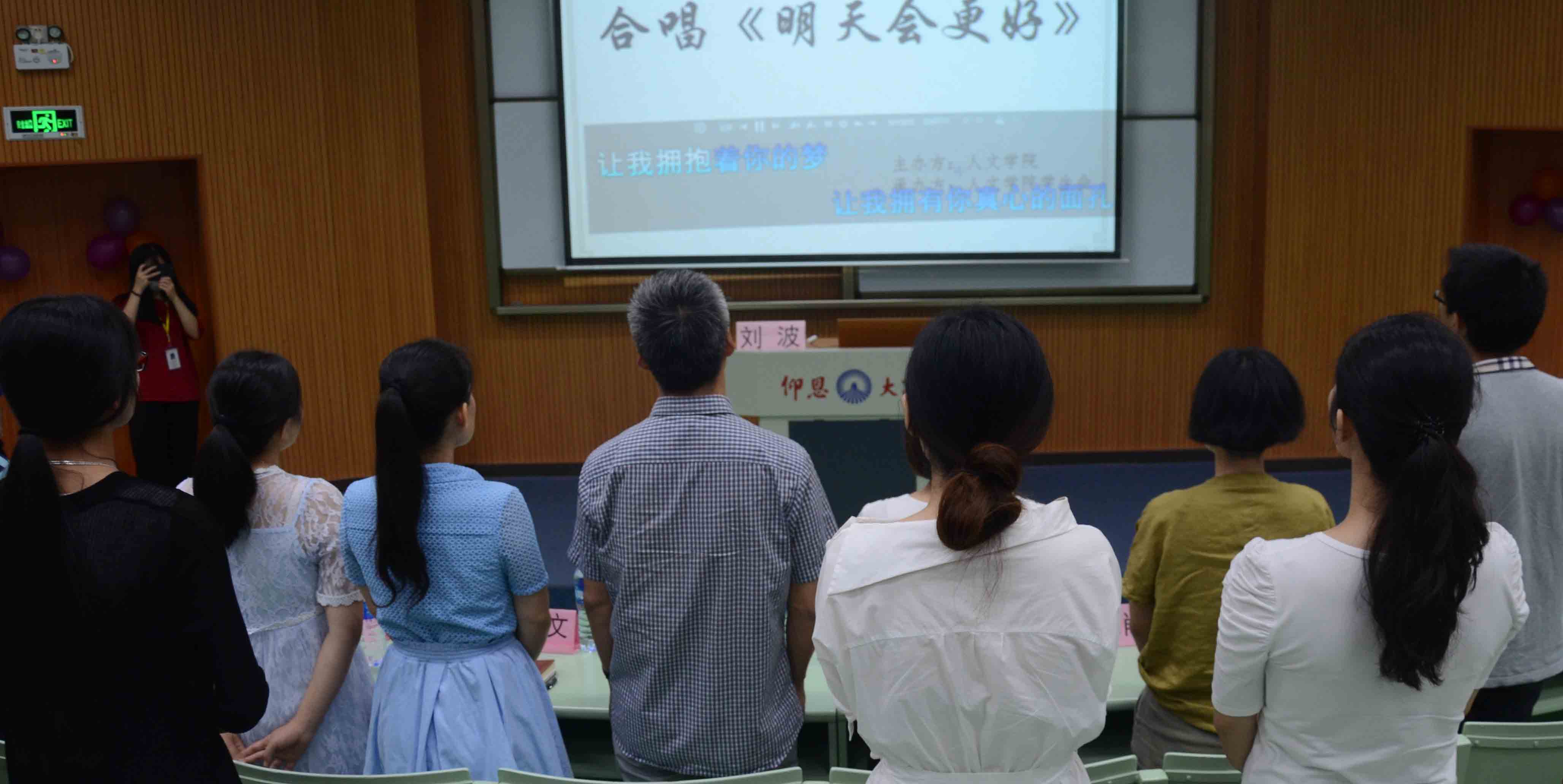 本次道德讲堂还设有现场互动、朗诵经典、唱歌、横幅签名等其他环节。现场互动中刘波老师耐心地回答同学们关于“大学生可以从哪些方面做随手公益”以及“做随手公益活动对其本人有什么价值”的问题,赢得现场的阵阵掌声。一首《明天会更好》的合唱让现场的氛围十分温暖。