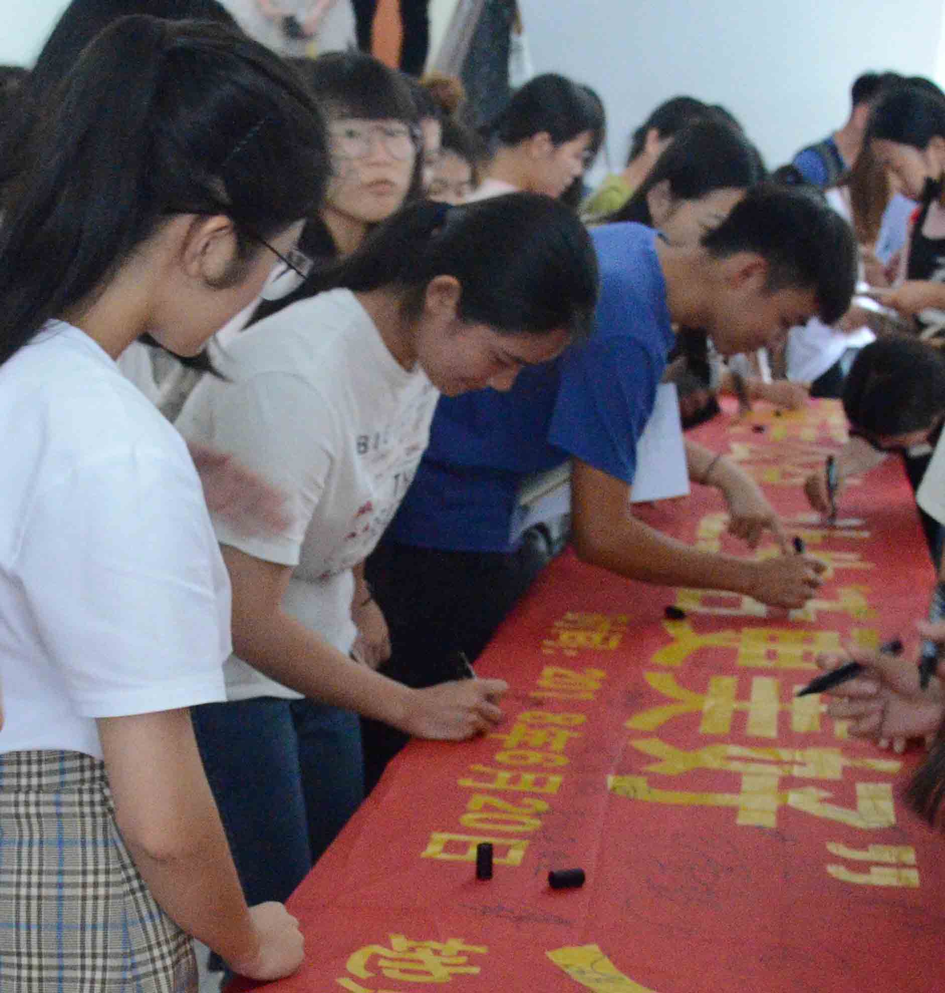 学生在横幅上签名
