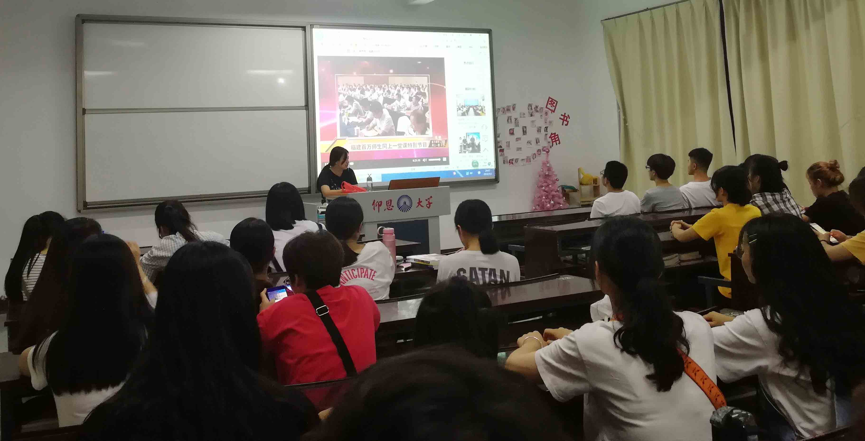 为推动习近平主席在新时代中国特色社会主义思想“大学习”活动广泛深入开展,进一步兴起“大学习”热潮,学习新思想,播种新精神,紧密配合《中共福建省委教育工委关于进一步推进高校开展习近平新时代中国特色社会主义思想“大宣讲”工作的通知》,beat365正版唯一官网必一组织各个班级学生于9月3日晚上8点整在各班级教室观看“学习新思想”的直播栏目。
