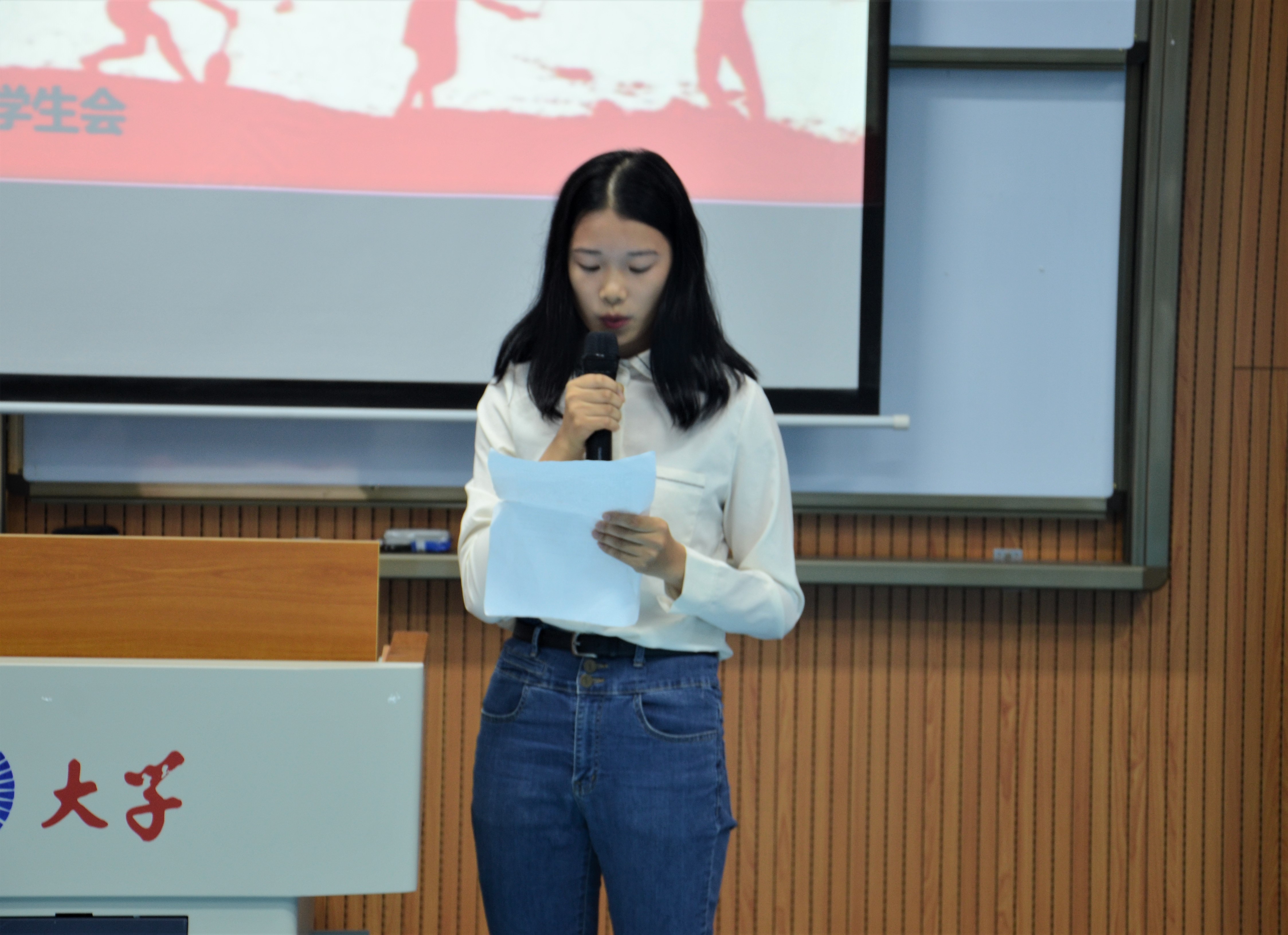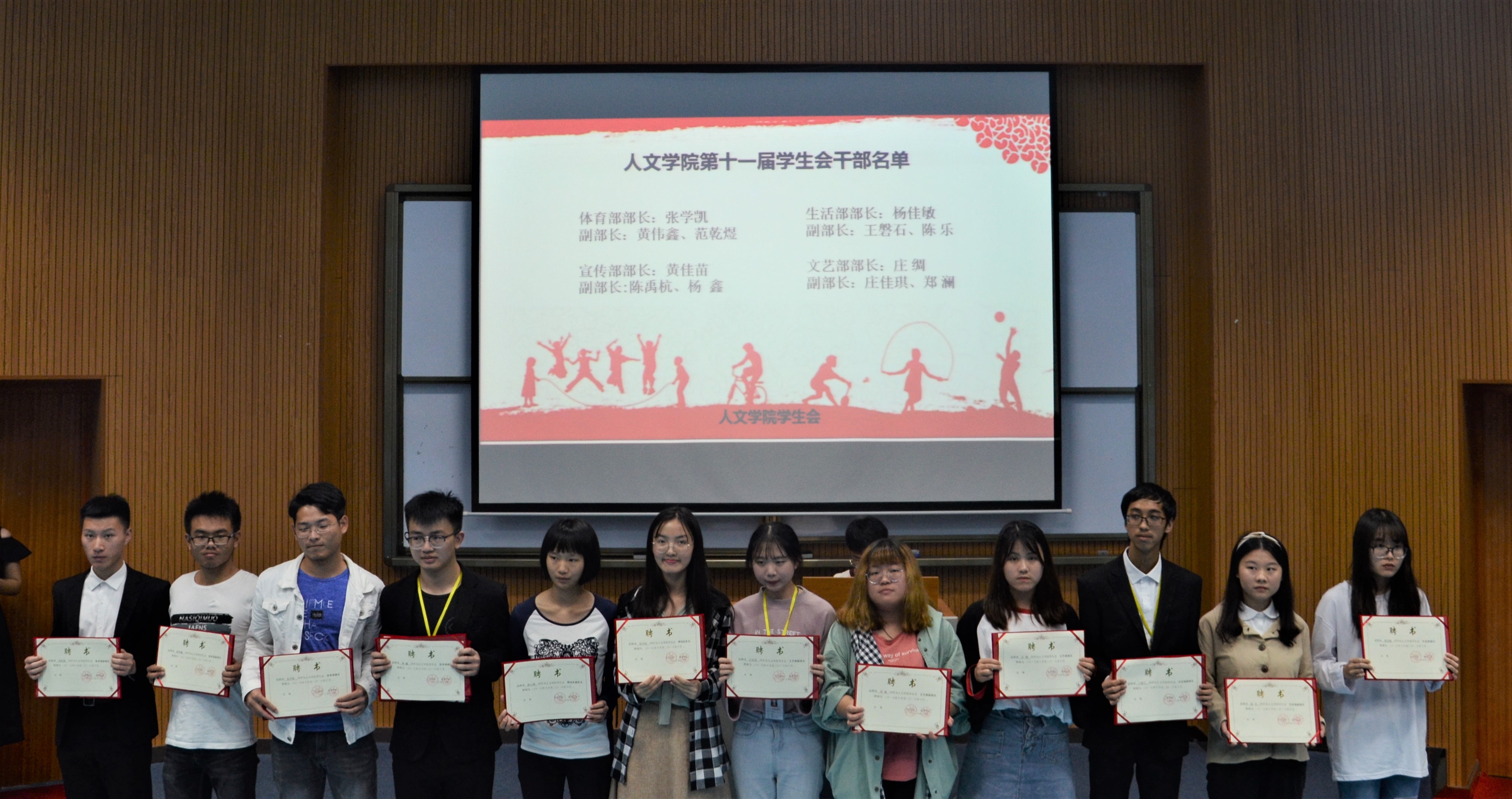颁奖环节 第十一届学生会主席吴志伟发言,回顾了自己当时加入学生会的初心,总结了本届学生会干部在本次校运会等学院工作中的辛苦付出,希望新一届干部接好这一棒,心中有人文情怀,脚踏实地工作。