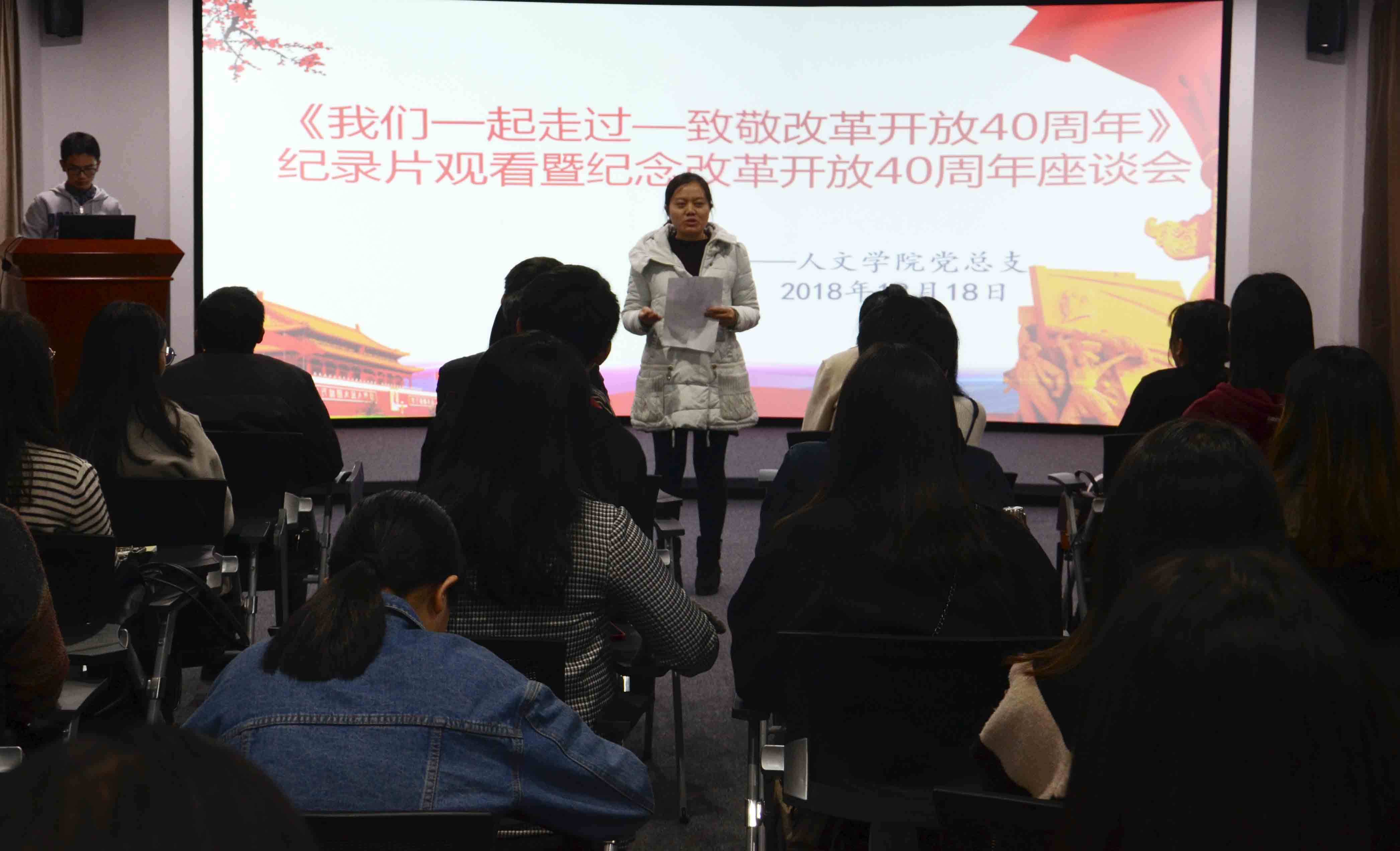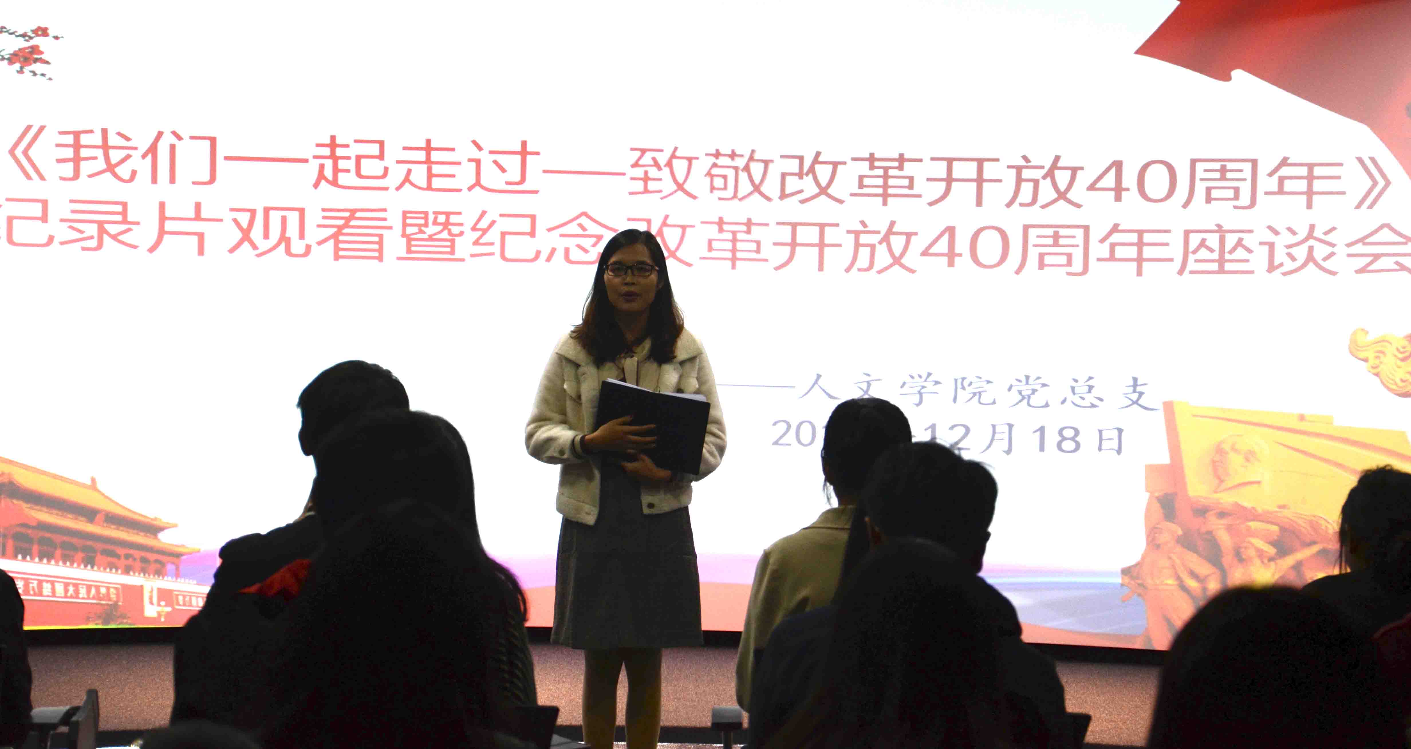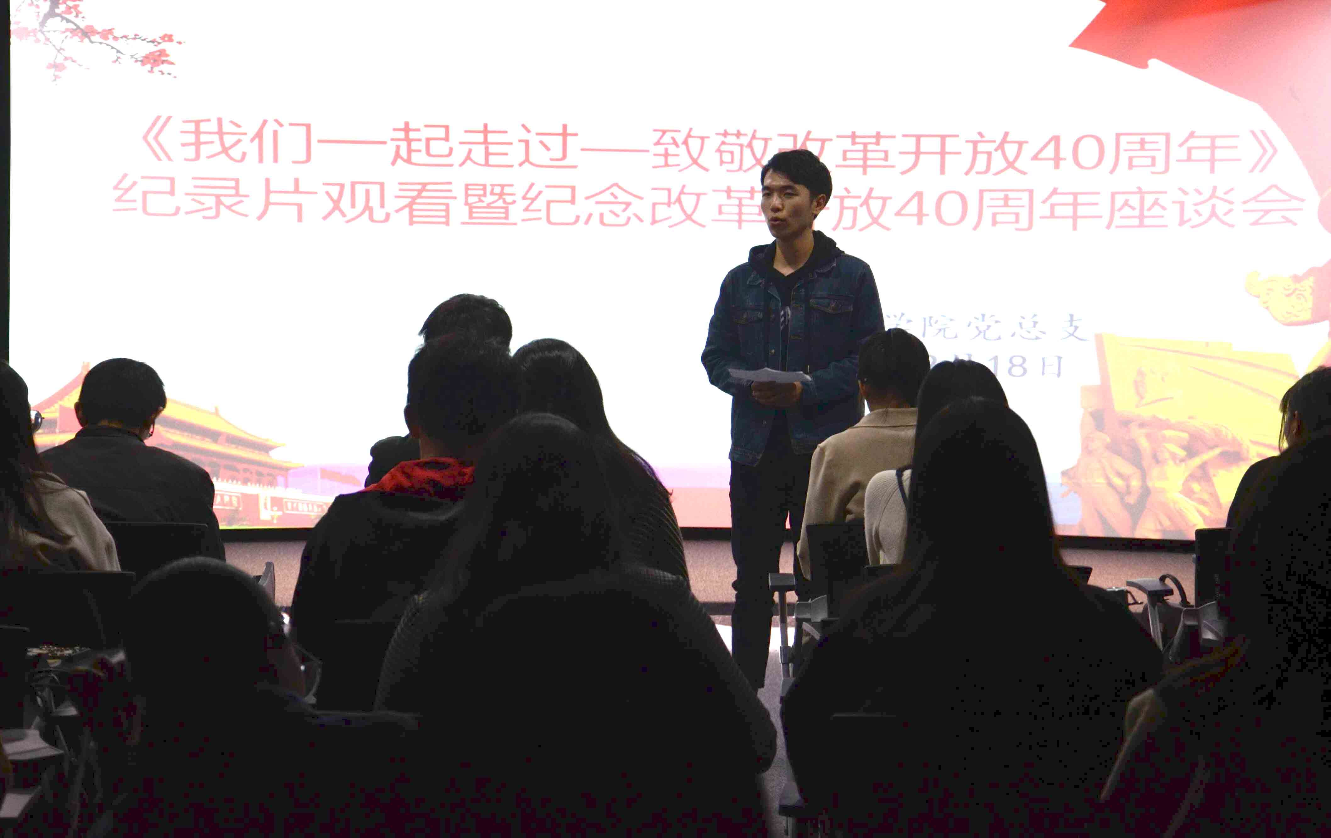 座谈会现场 在座谈会召开之前,党员代表们集中观看了大型纪录片《我们一起走过——致敬改革开放40周年》,座谈会由beat365正版唯一官网必一党总支副书记刘巧玫主持。