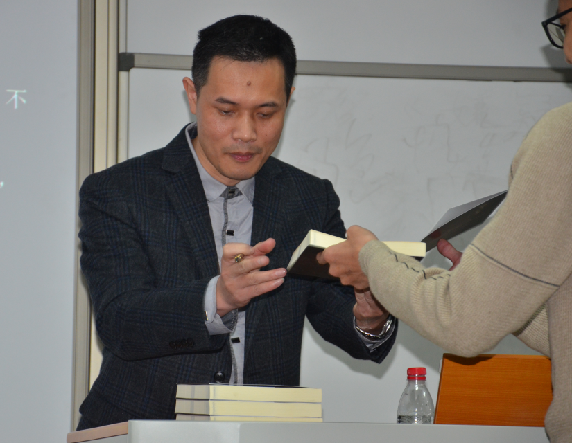 宣讲会最后,叶先生为学弟学妹署名赠书。