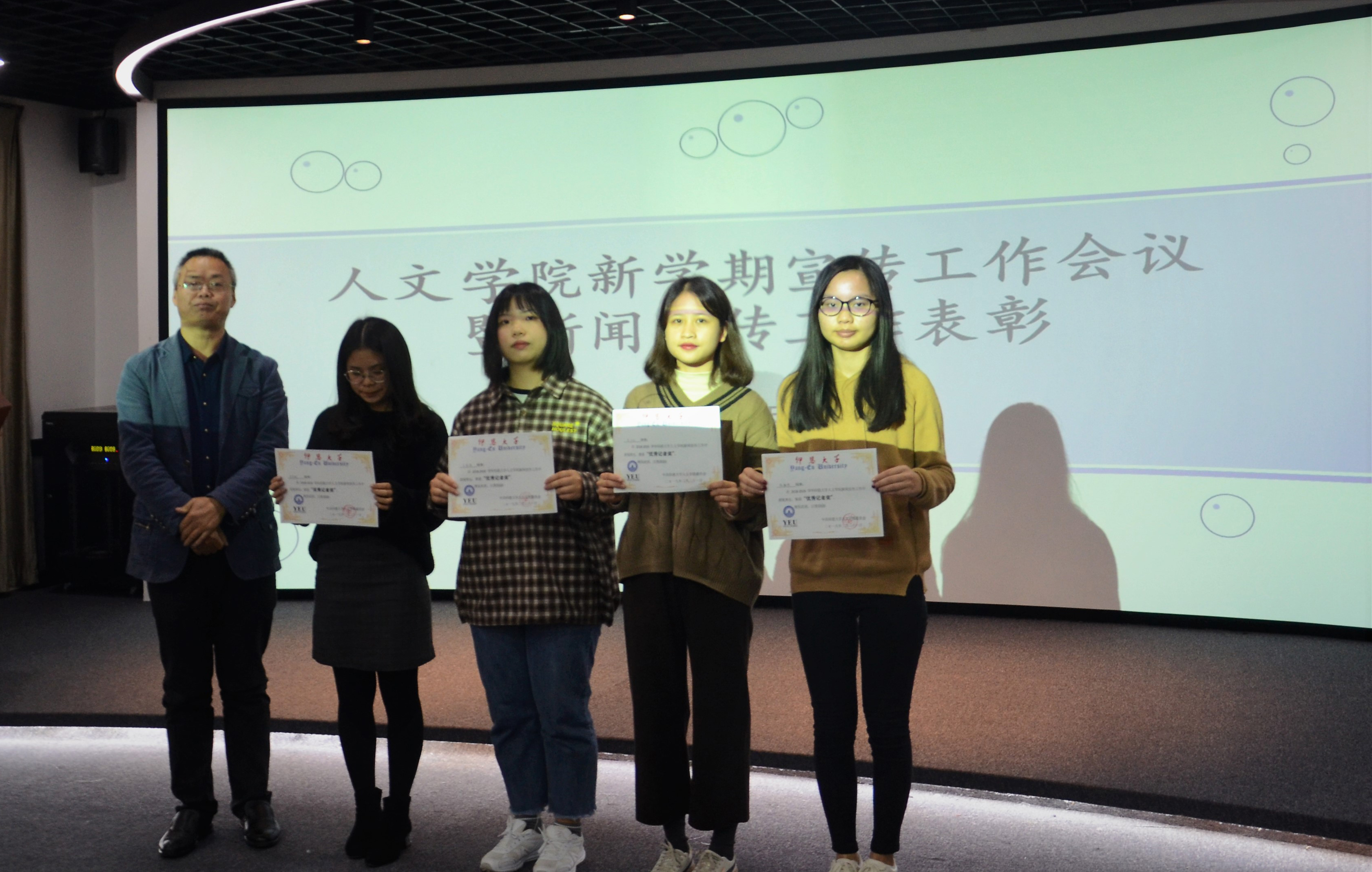颁奖现场 刘巧玫老师对新学期的宣传工作以及新媒体团队建设进行部署,并表示:“希望同学们能够结合专业所学在宣传工作中,大胆创新,提高写作、采访、摄影、沟通、平台编辑等各方面技能。树立大宣传理念,举全院之力,做好宣传工作”。