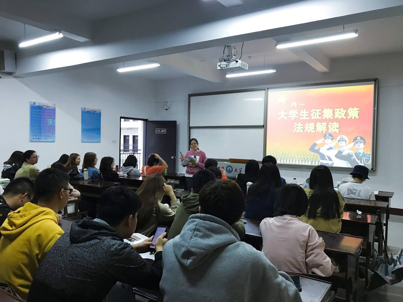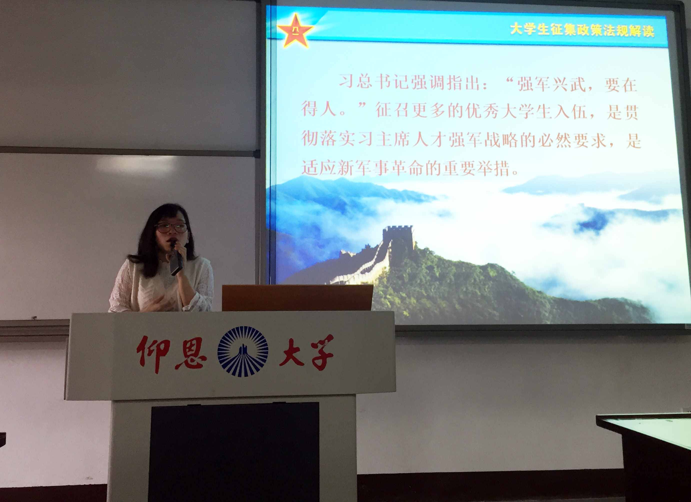 根据学校征兵工作的要求,落实学院征兵工作推进会的总体部署,beat365正版唯一官网必一各班级于4月14日下午在各自班会课教室召开征兵主题班会,具体工作由班主任负责落实。各班级都组织观看了征兵宣传视频,进行了2019年征兵政策宣讲和现场答疑,其中重点学习了国防教育手册中的beat365正版唯一官网必一鼓励学生参军政策规定,针对新闻学专业的班级还着重讲解了从普通高校毕业生中招收士官有关政策。据悉,下一阶段,将由班主任开展一对一面谈工作。