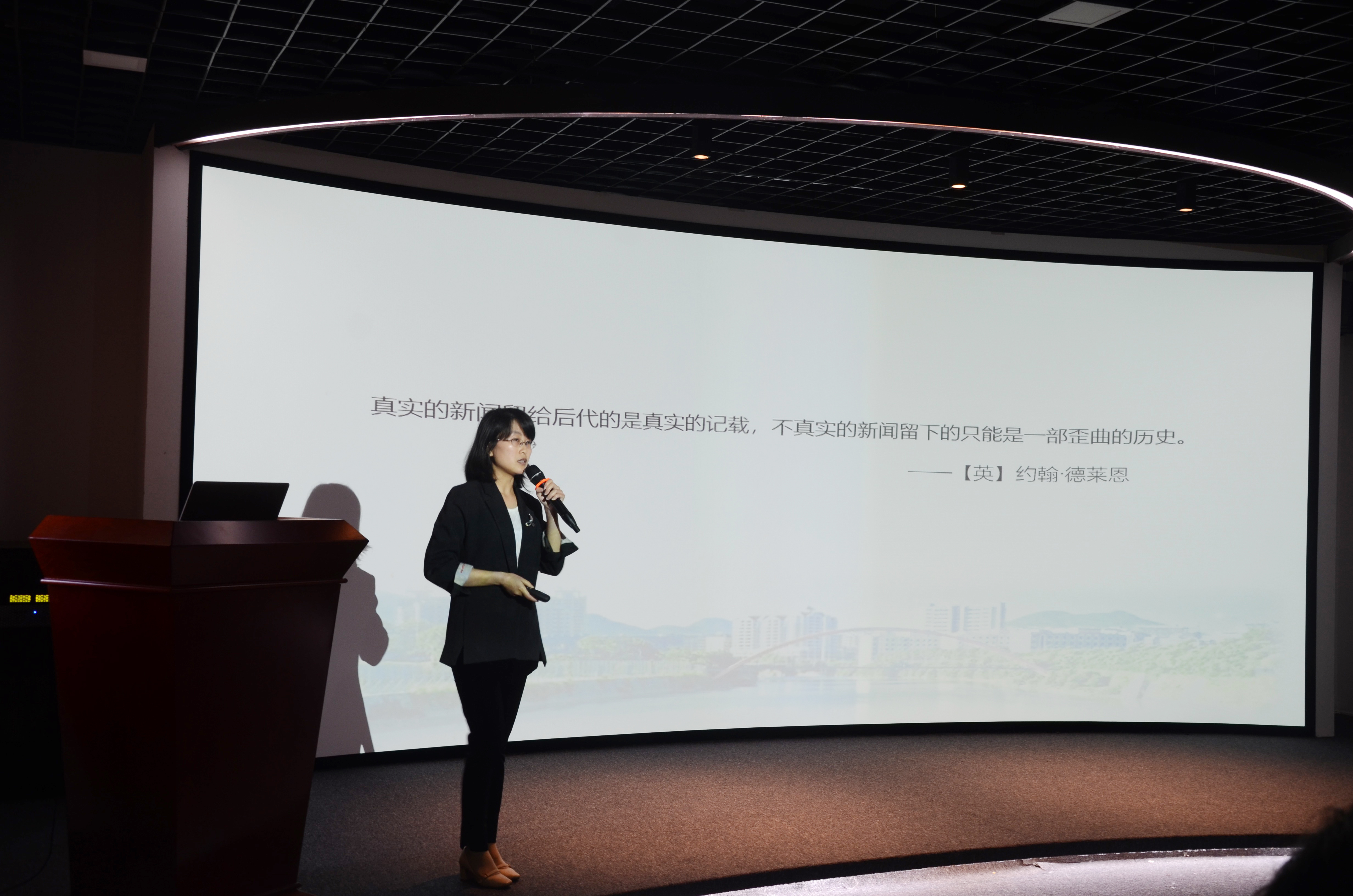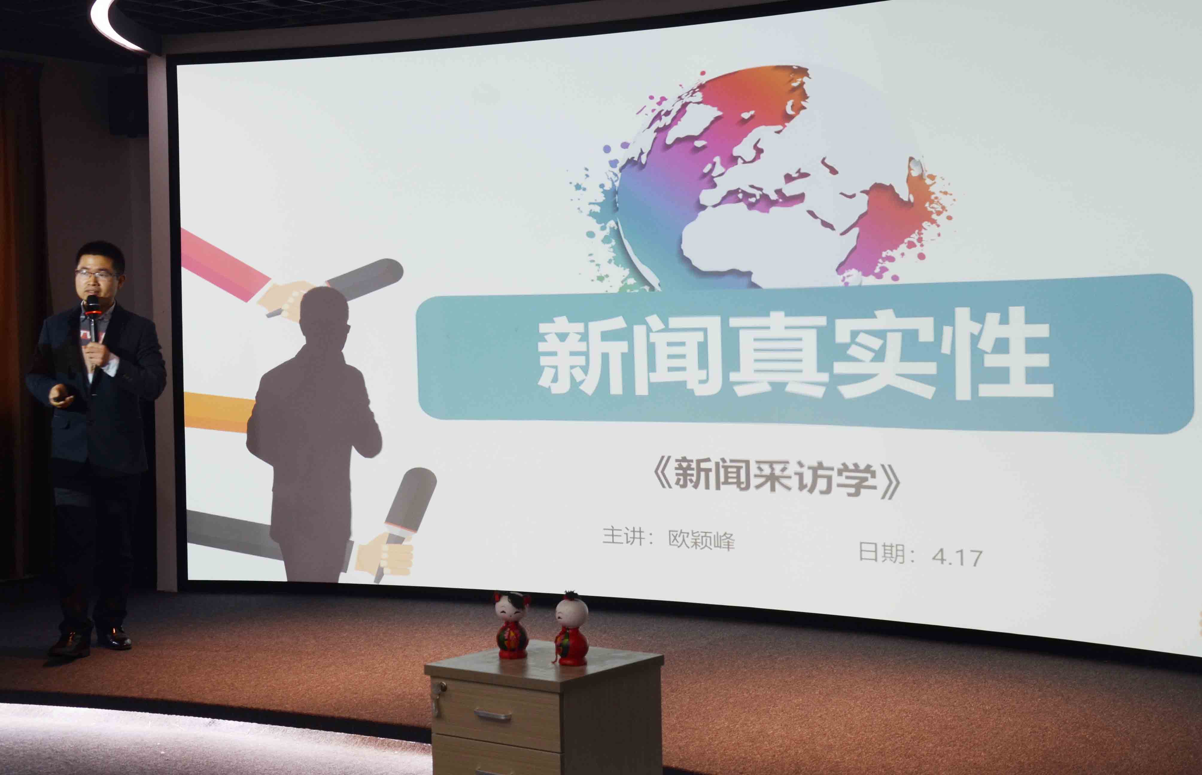 比赛现场 黄丹老师着重讲解新闻摄影的真实;庄婉容老师从2018年的假新闻探讨新闻失实的表现与原因;苏顽鹏老师围绕新闻真实性的含义展开;欧颖峰老师为了更直观地讲解真实就是如实反映,在讲授现场摆放了2个福娃陶瓷;柯晓军老师则结合自身的采写实践来谈新闻的真实。