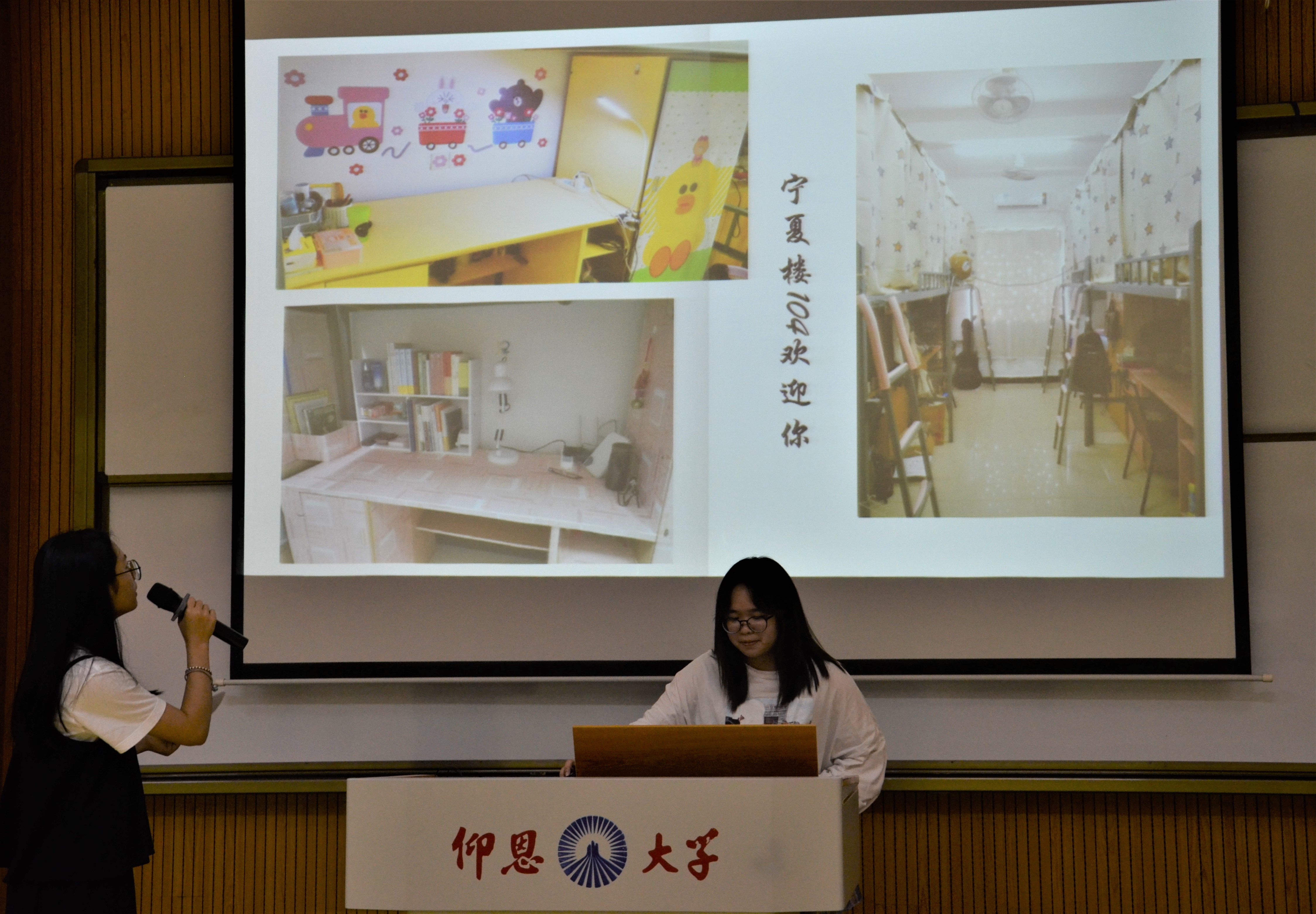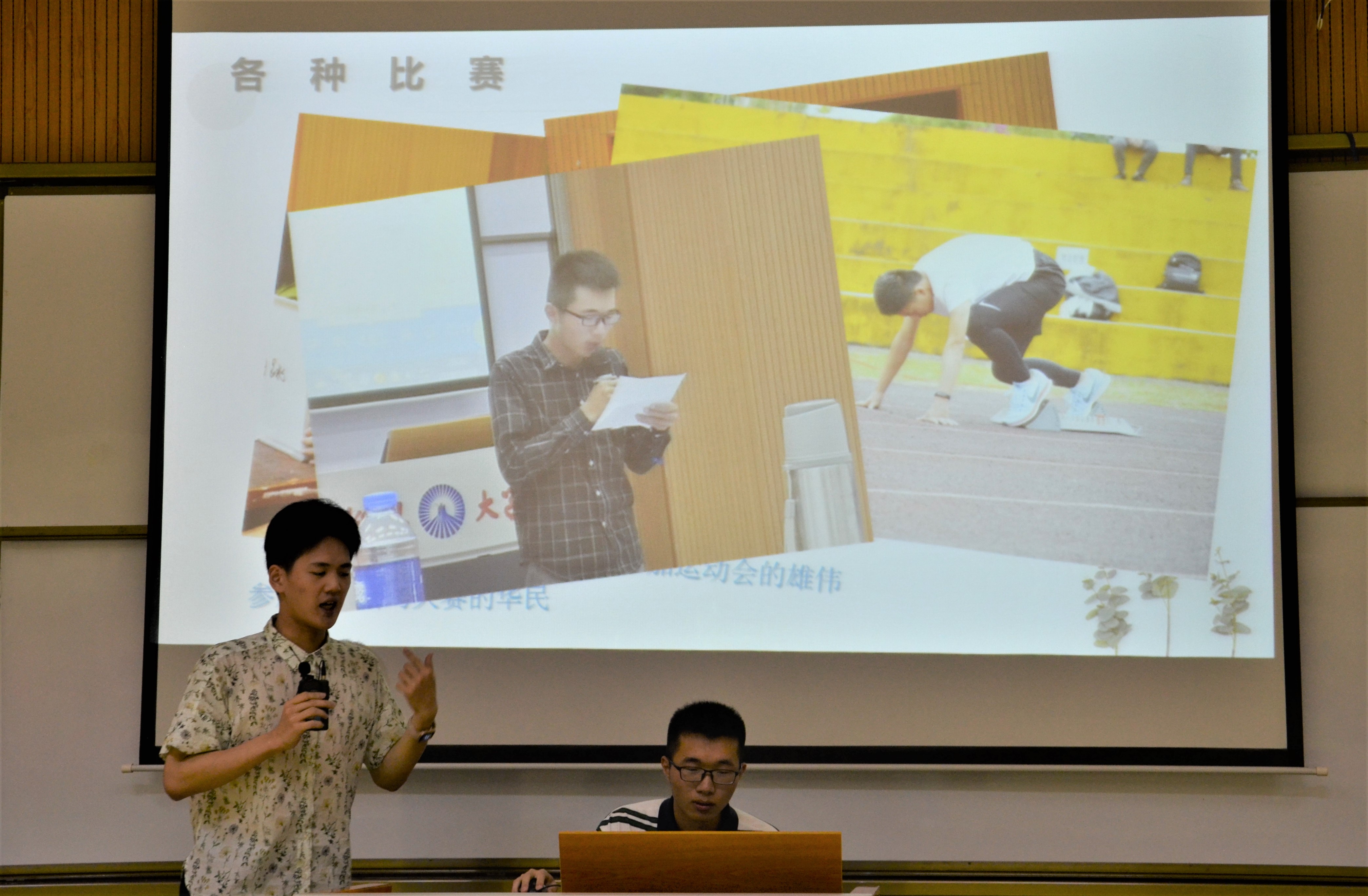 比赛现场 本次比赛由风采展示和游戏比拼两个环节组成,共有七支队伍参加。参赛选手们通过PPT 、照片、视频、才艺展示等方式,向大家介绍宿舍成员、集体活动、个人风采、共同愿景,充分展现了宿舍的独特风貌以及建立起来的深厚舍友情谊。从参赛选手展示的宿舍角落、成员照片、专业成绩排名、社团活动、获奖情况、英语四六级和计算机过级率等可看出,每个宿舍具有的独特魅力和你中有我、我中有你的包容情怀与相处之道。由各个宿舍带来的配乐表演、影片配音、宿舍视频、penbeat表演等更是精彩,赢得现场观众的阵阵掌声。本次比赛增设的“你比我猜”游戏环节,舍友二人配合默契,动作幽默,将本场比赛的气氛推向高潮。