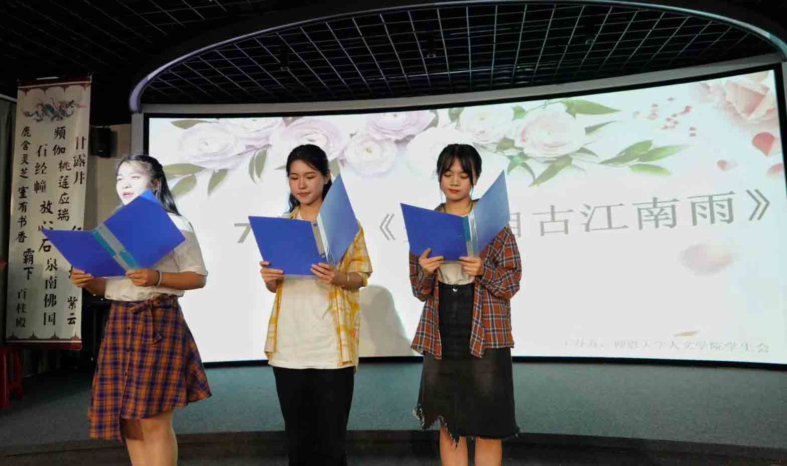 接下来,同学们带来了朗诵、歌曲、舞蹈等精彩表演,其中,由李少聪老师、陈禹杭和梁宇韬同学带来的歌曲《初爱》更是把晚会推向了高潮。