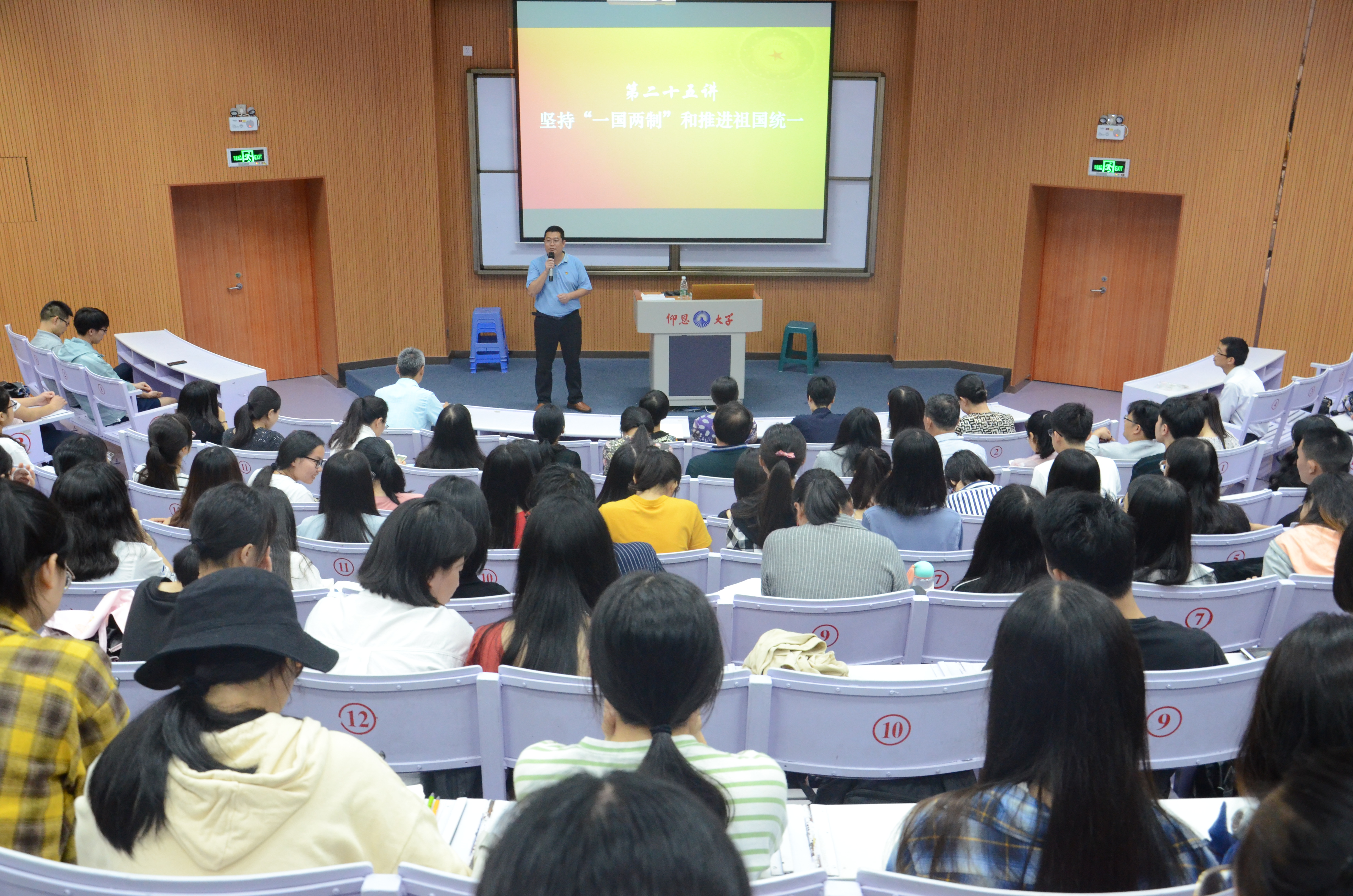 吴晓伟老师 吴晓伟结合自身学习习近平新时代中国特色社会主义思想的心得体会,凝练出“四词八字”,从“过去”“原则”“现在”和“未来”四个方面深入阐述“一国两制”与国家发展进程的伟大意义,系统讲解了“一国两制”实践的成功经验,坚持“一国两制”方针、推进祖国统一大业的根本立场和重大原则。他指出,习近平总书记关于“一国两制”的伟大构想和成功实践的重要论述,充分反映了我们党对“一国两制”实践的规律性认识达到了一个新高度。他号召大家要认真学习贯彻习近平新时代中国特色社会主义思想,保持高度自信和战略定力,继续把“一国两制”事业成功推向前进。