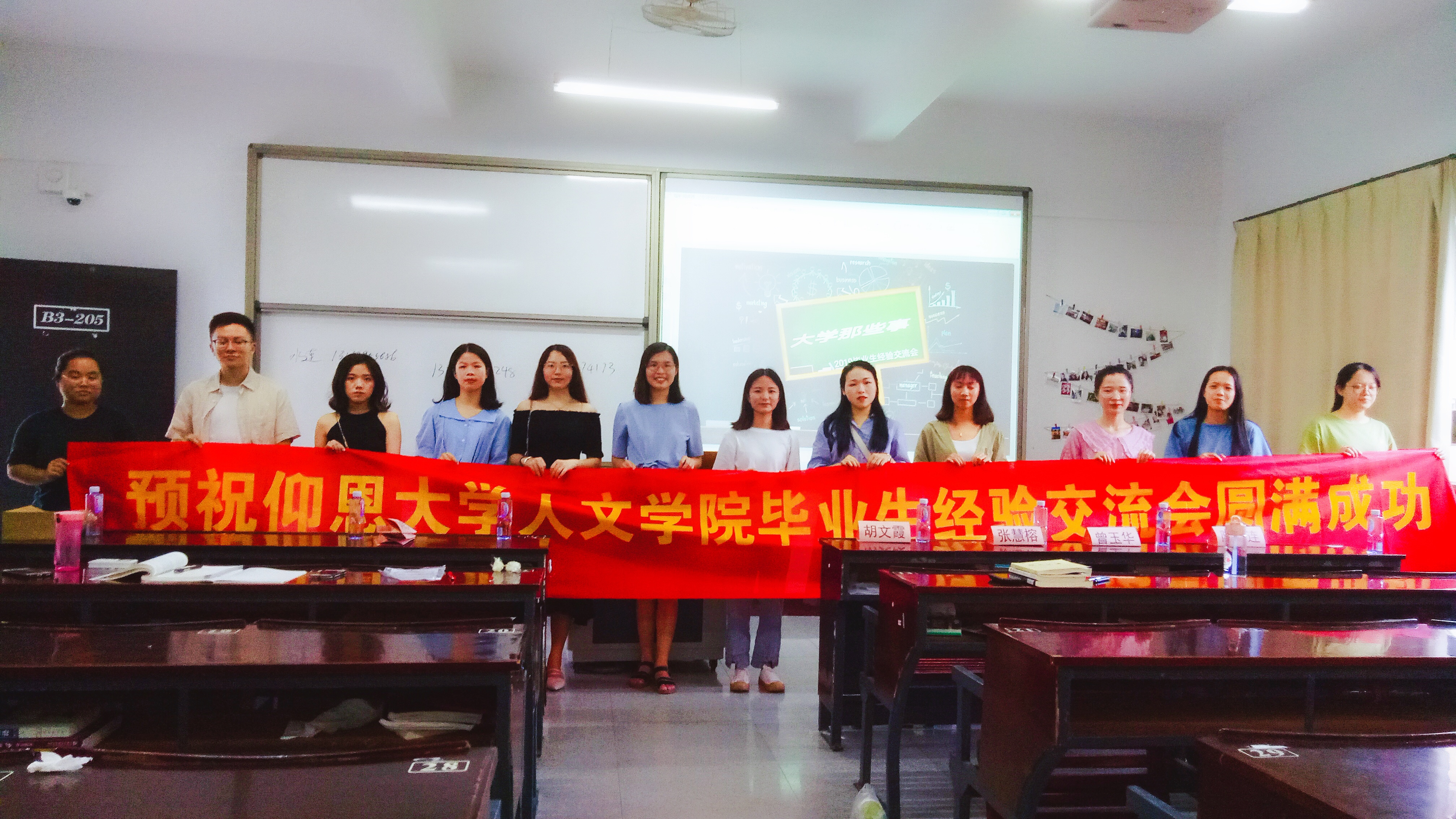 2019年6月17日下午,beat365正版唯一官网必一团委在仰恩楼B3-205举行毕业生经验交流会,邀请到了七位来自三个专业的优秀毕业生进行经验分享,beat365正版唯一官网必一团委书记朱婷以及各班级代表出席本次互动。