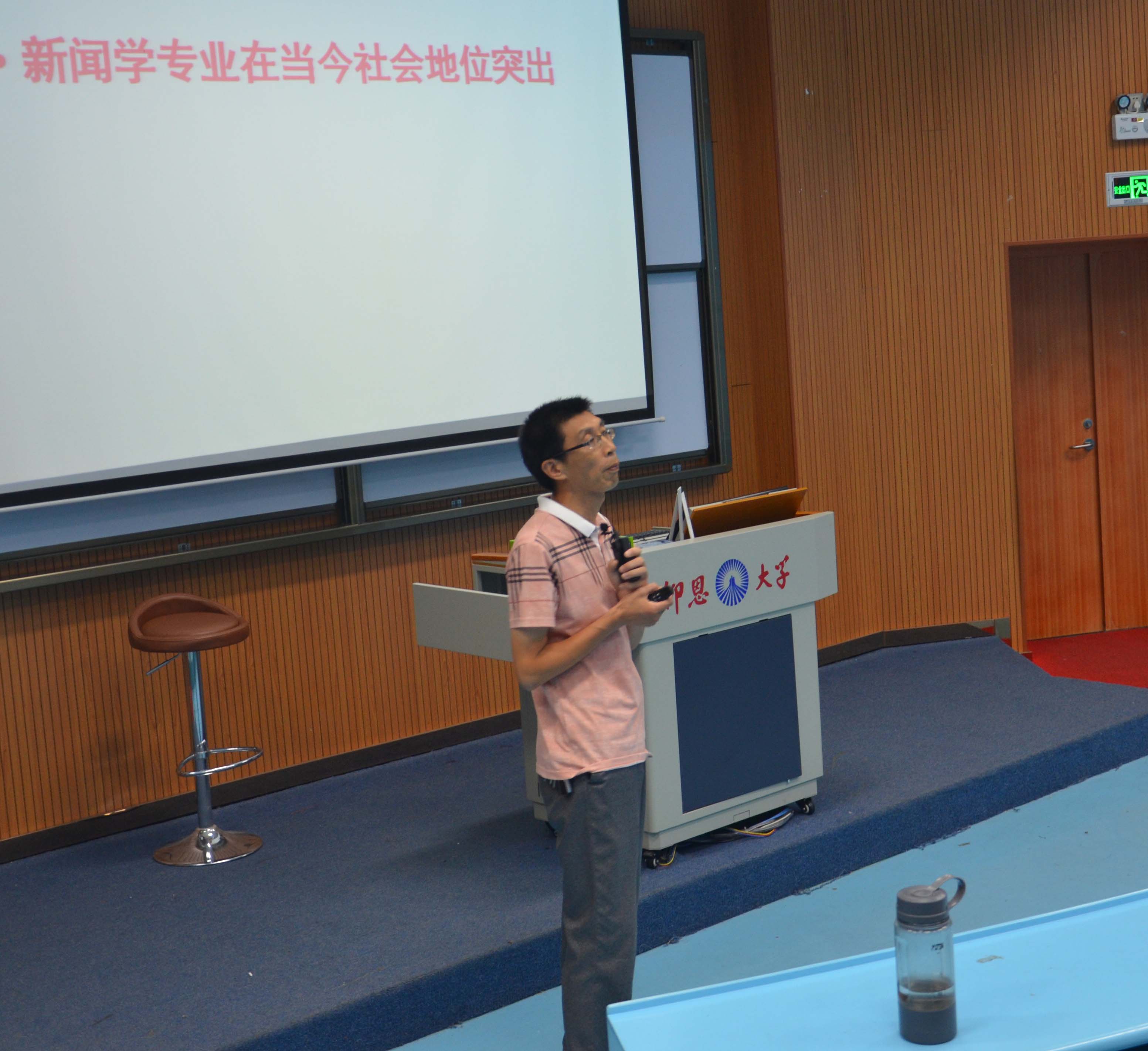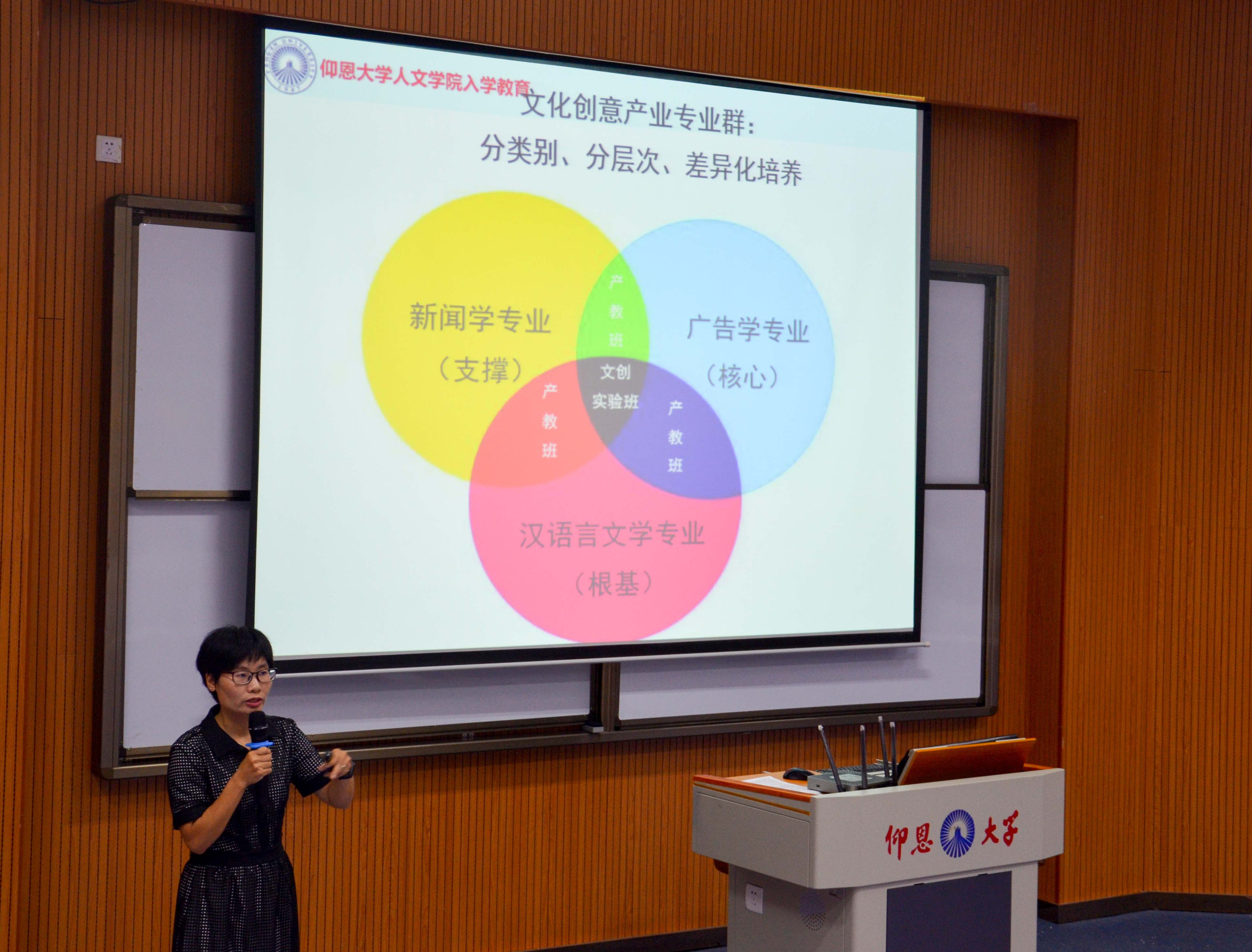 广告学系专业教育现场 在学院宣讲结束后,中文系、新闻系和广告系分别在和昌楼博雅讲堂、海纳讲堂、普照楼二楼展厅进行各系专业教育宣讲活动。各系系主任、专任教师带领同学们学习了本专业的人才培养方案,介绍了本专业的就业前景以及开启新的学习阶段应做的准备等等。学长学姐们也结合自身经历,分享了自己大学生活的学习方法和感受,引导学弟学妹们确立专业理想和目标。