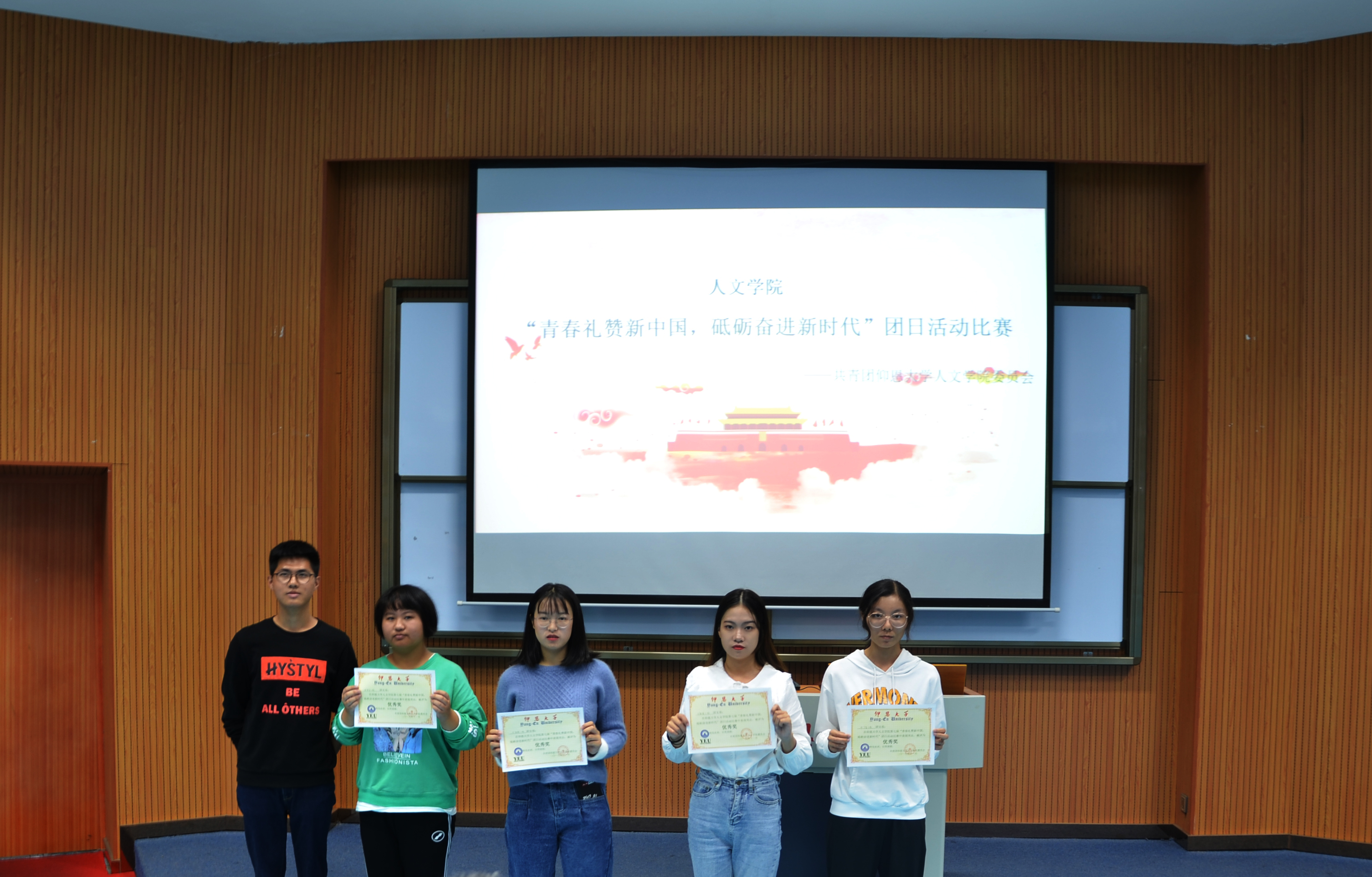 颁奖现场 比赛最后,胡书记上台作总结发言,他指出,“党有号召,团有行动”,举办此次团日活动大赛,是为了让同学们更好地学习习近平新时代中国特色社会主义思想,推动“不忘初心、牢记使命”主题教育往深里走、往实里走。作为beat365正版唯一官网必一的学生,要围绕专业实际开展活动,在团日活动中,彰显人文特色,厚实人文功底,做到“博学而笃志,切问而近思”。最后,他号召同学们要积极开展集体活动,创新活动内容与形式,提升班级凝聚力,并激励同学们努力学习和实践,成为国家和时代需要的人才。