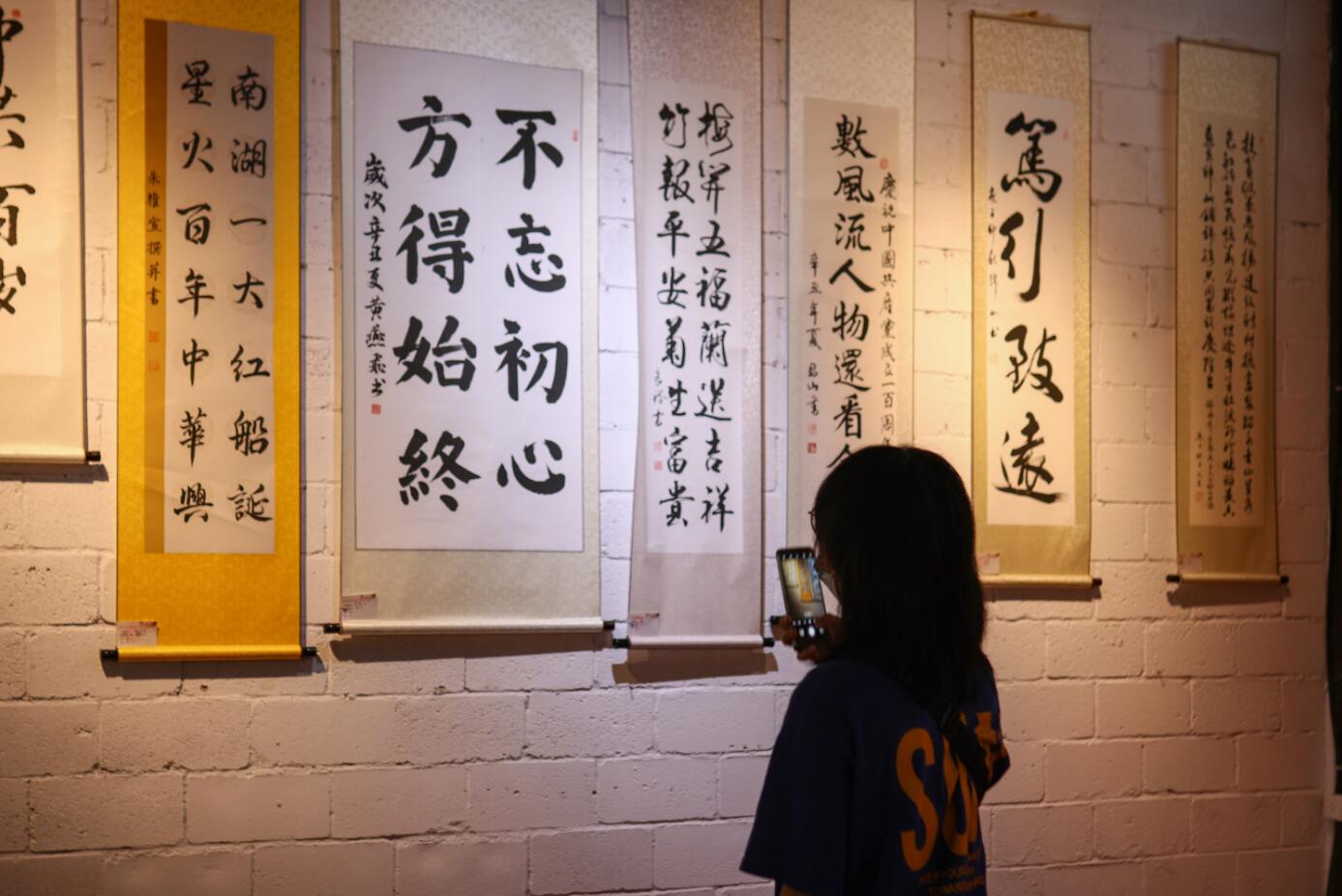 在艺术空间,庆祝建党100周年主题书画摄影展——书画中的百年党史正在举办。泉州知青创作的书法、油画、剪纸等作品,展示了革命、建设和改革不同历史时期党员先进人物和英雄模范事迹,在党史学习教育的同时,同学们对英雄人物有了更为深刻的理解。