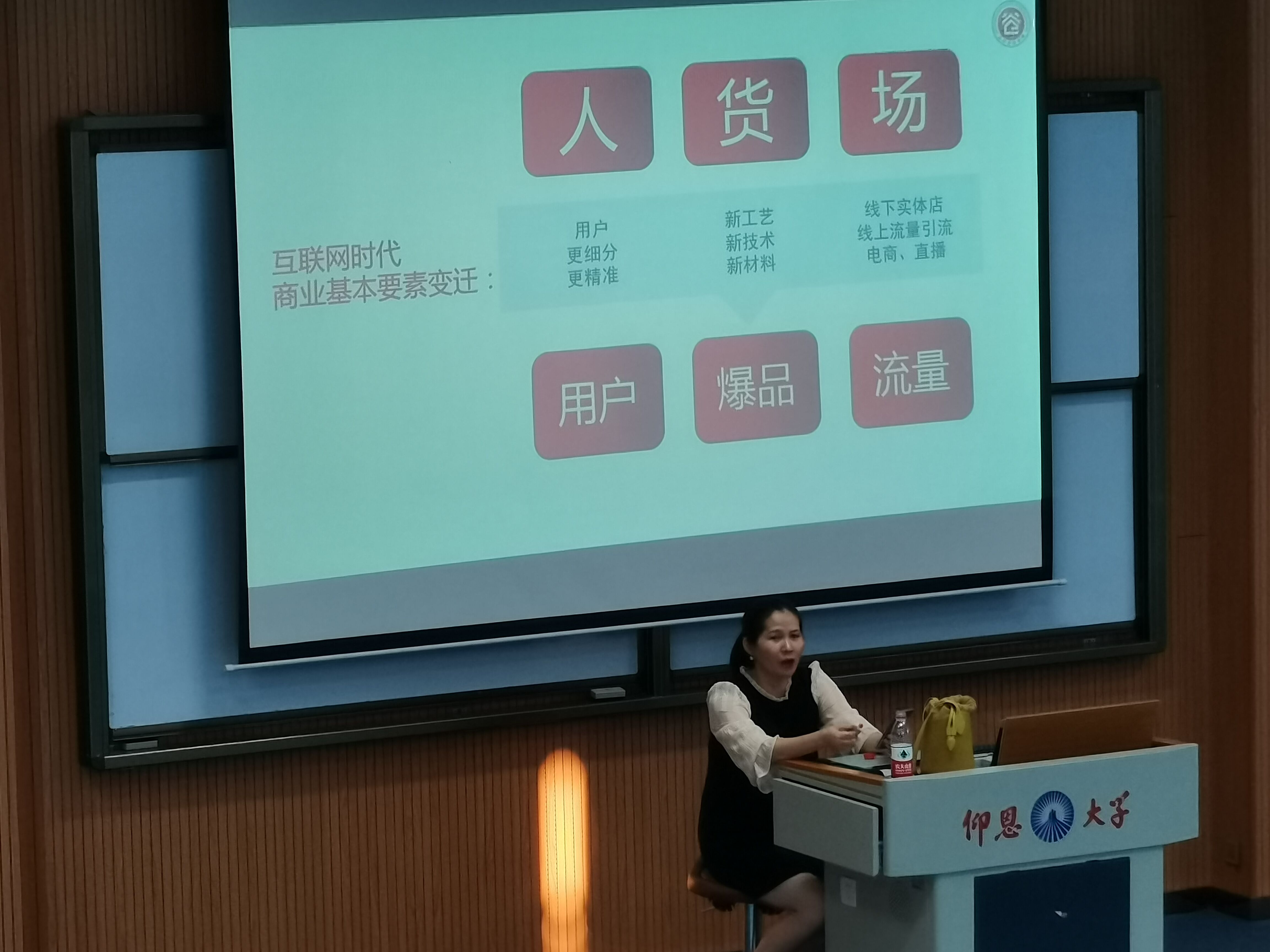 吴棋华老师由“共情”引出本节课程的主题,并就爆品品类冠军等新名词进行含义界定。此外,还向同学们举了老板抽油烟机,小米手环及元气森林等多个企业品牌的成功案例以及分析其成为爆品及品类冠军的原因,以学生的角度出发,创设情境,通过提问的方式,引导学生自主思考,帮助同学们分析意见,还结合自身经历与经验向同学们介绍当今市场转向,让同学们对于新媒体的运营与后续的工作有了更加深入的了解。