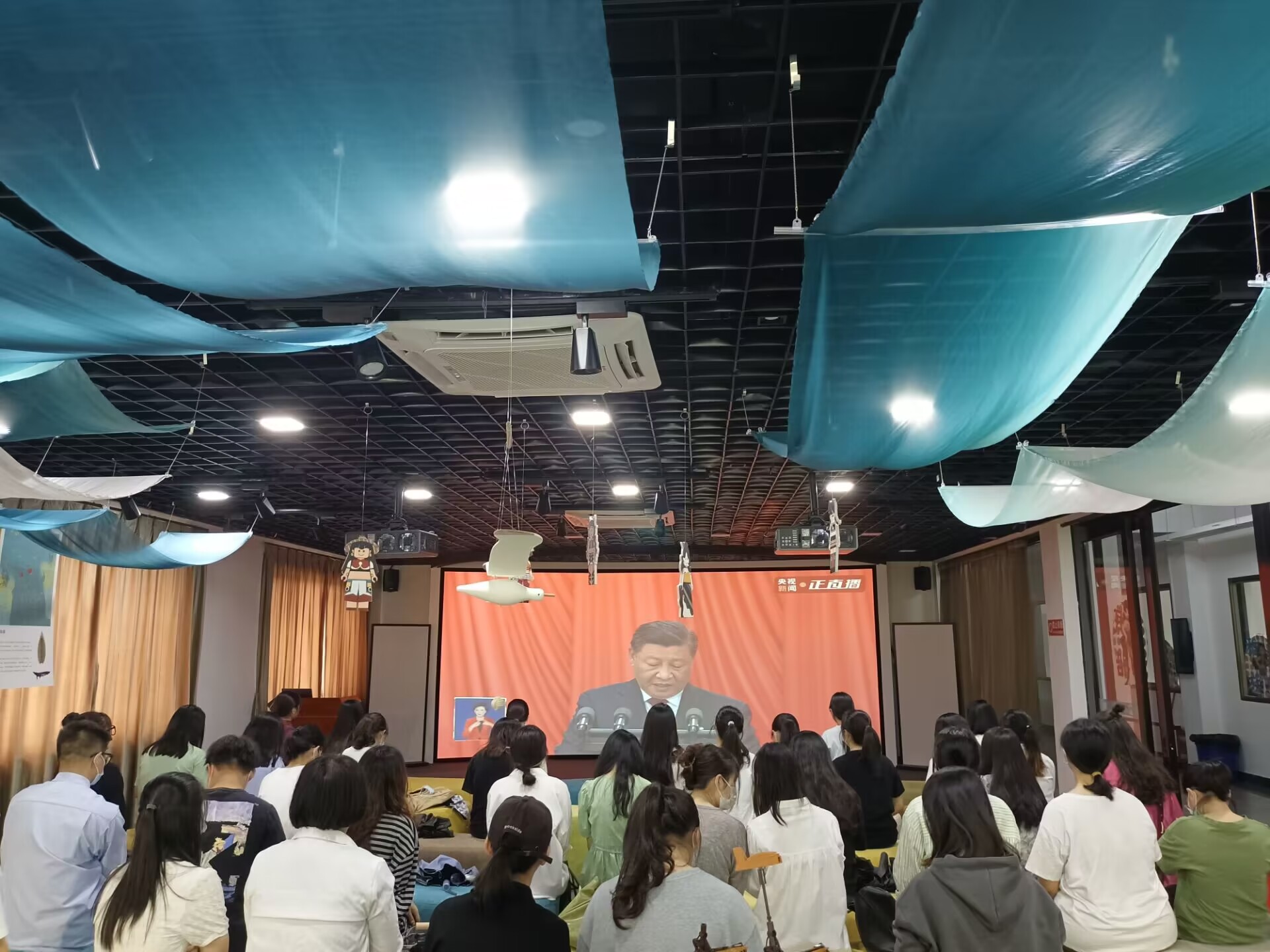 部分党员在普照楼展厅收看直播
