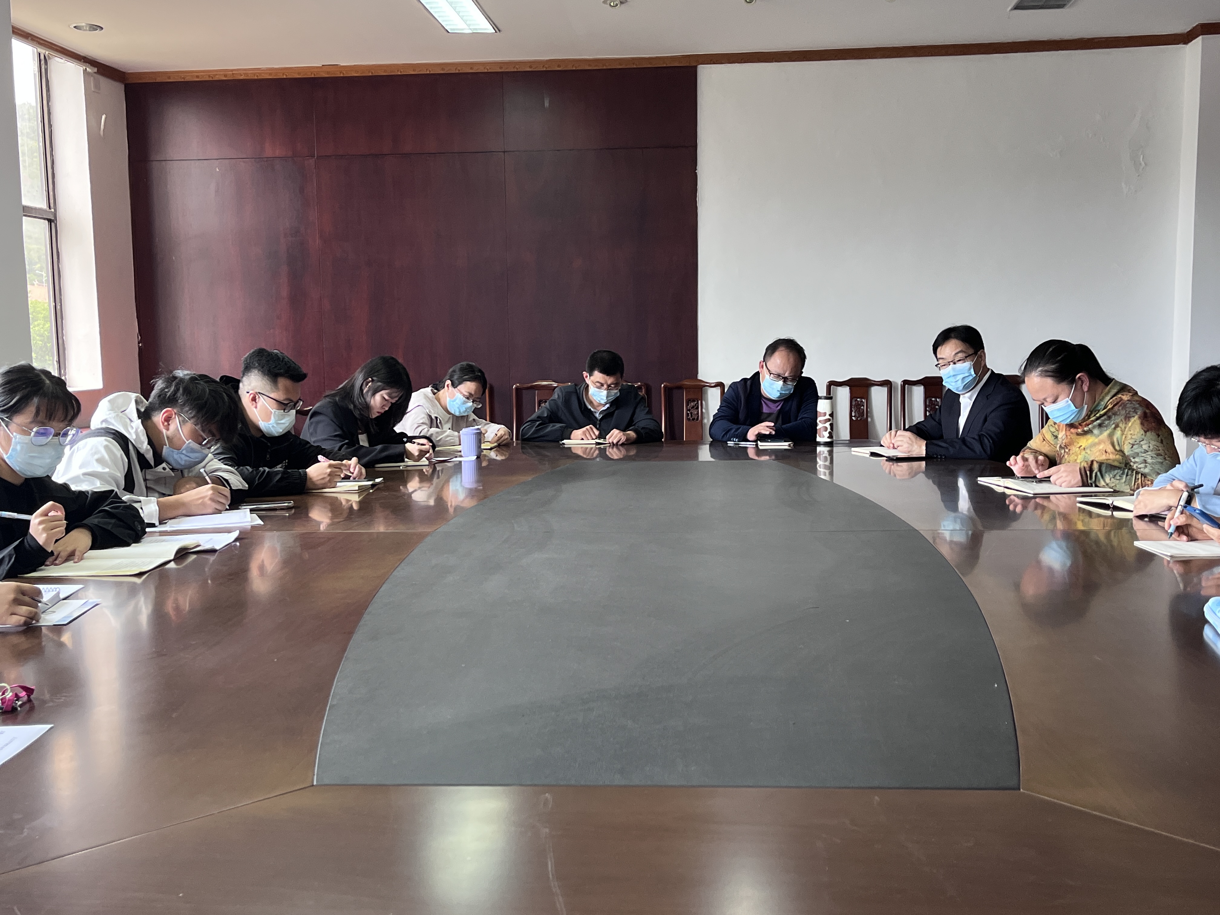 11月2日下午,beat365正版唯一官网必一党总支理论学习中心组在新区行政楼会议室集中理论学习,专题传达学习党的二十大精神。党总支书记岳秀文主持会议并讲话,理论学习中心组全体成员参加会议。