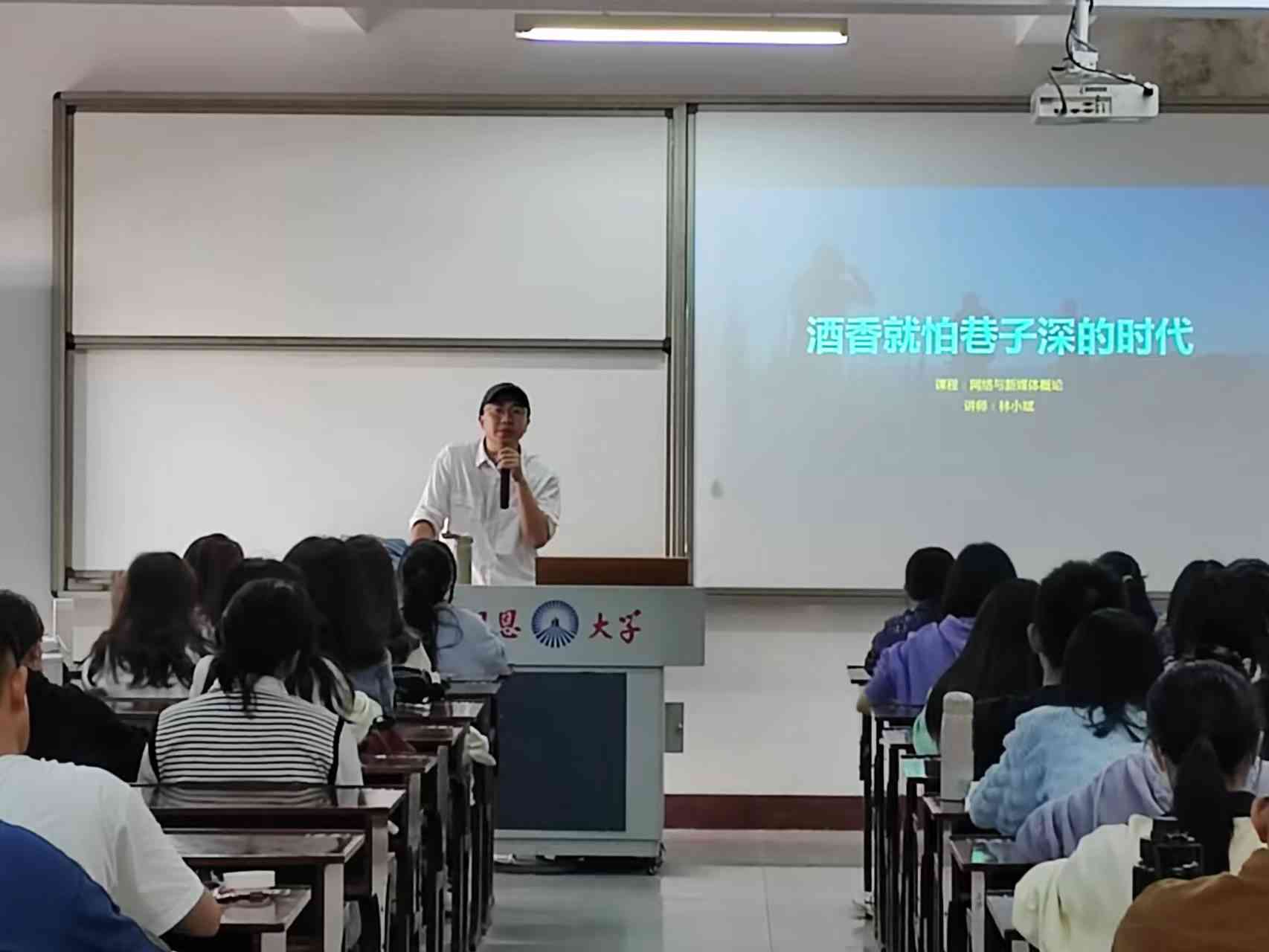 11月9日上午,beat365官网邀请外聘教师林小斌在仰恩楼D4-401为22级网络与新媒体1、2班学子开展“网络与新媒体概论”课程。
