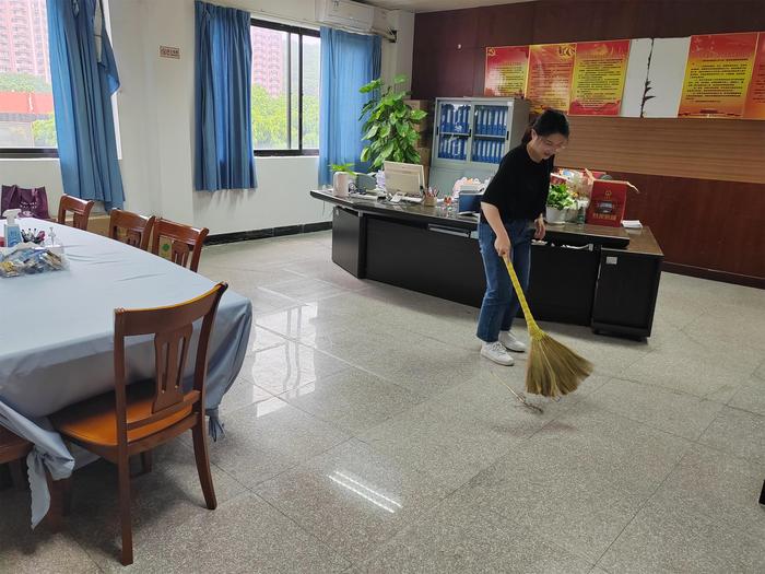 全院卫生大扫除率先开始,执行过程中,卫生检查小组全面排查、消除安全隐患,并组织同学们积极参与大扫除。通过此次大扫除,促使同学们对文明校园有了更深刻的了解,也营造了一个更为美好的校园环境。为了能更好地打造高质量校园环境,卫生检查小组定期对班级打扫情况进行检查并给予评分,各班通过评分发现班级不足并加以完善,争取共建美丽校园。