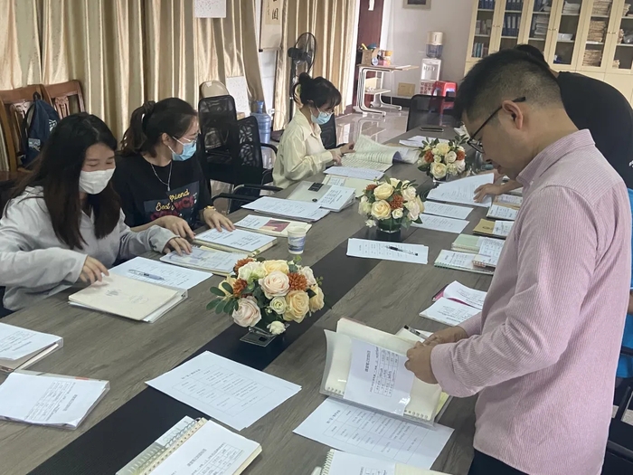 复赛阶段,由beat365正版唯一官网必一团委成立学院评审工作小组,beat365正版唯一官网必一党总支书记岳秀文任组长,陈肖利副院长任副组长,小组成员由各系主任、学院团委书记、教师代表构成。评审小组于5月25日下午4点30分集中在普照楼308办公室,为各班级推荐上来的课堂笔记打分。