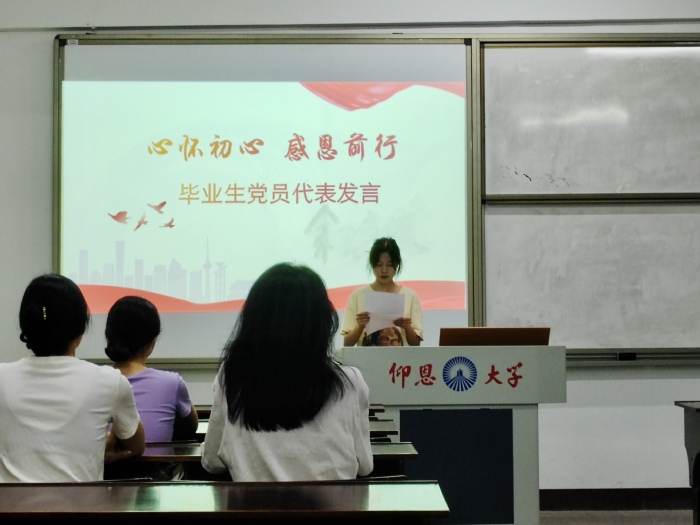 为深入开展学习贯彻习近平新时代中国特色社会主义思想主题教育,引导毕业生党员在文明离校工作中发挥先锋模范作用,进一步加强毕业生党员党性意识和廉洁自律意识,以良好的精神风貌踏入新征程。2023年6月30中文专升本学生党支部在普照楼309组织开展逐梦新征程,启航向未来毕业生党员感恩教育活动,活动由支部宣传委员林雪婷主持,支部全体毕业生党员参加。活动内容包括“一堂党课,不忘初心”、“心怀初心,感恩前行”、“谆谆寄语,昂首未来”、“重温入党誓词,牢记使命”等环节。
