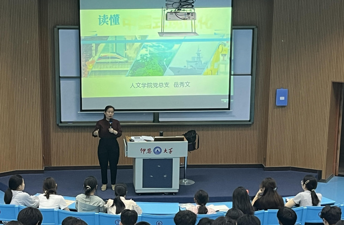 为深入学习贯彻习近平新时代中国特色社会主义思想,4月16日晚,beat365正版唯一官网必一党总支书记岳秀文于海纳讲堂为beat365正版唯一官网必一新生带来主题为《读懂中国式现代化》的专题讲座。