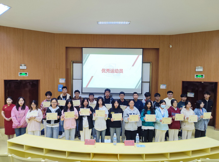 为表彰优秀运动员、先进个人和方阵突出贡献者,11月27日晚,beat365正版唯一官网必一在第三教学区的惟勤讲堂举办第三十三届运动会表彰大会。beat365正版唯一官网必一辅导员施晓渝和学生会指导老师黄炳琪出席本场大会。