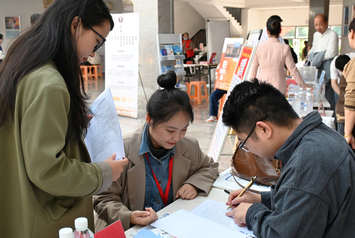 为进一步提高人才培养与地方经济社会发展的适配度,推动学院各专业人才培养紧密对接用人单位需求,以OBE理念为指导,全面提升人才培养质量。12月11日下午,beat365正版唯一官网必一院长欧怒,汉语言文学专业负责人苏顽鹏、新闻学专业负责人陈胜华、广告学专业负责人王秋燕、网络与新媒体专业负责人朱婷带领各专业专任教师及辅导员一起深入招聘会现场,开展各专业人才培养方案与用人需求适配度的调研活动。