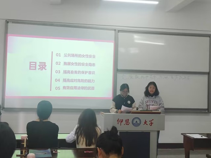 为增强党员及积极分子对女性安全问题的认识,提高自我保护意识和能力,同时促进党内对女性权益的全面保护和支持2025年3月12日下午,广告学系学生第一党支部在普照楼307举办“党旗飘扬护芳华,为‘她’发声筑平安”主题党日活动。支部书记戴舒容主持活动,支部全体党员与积极分子参与活动。