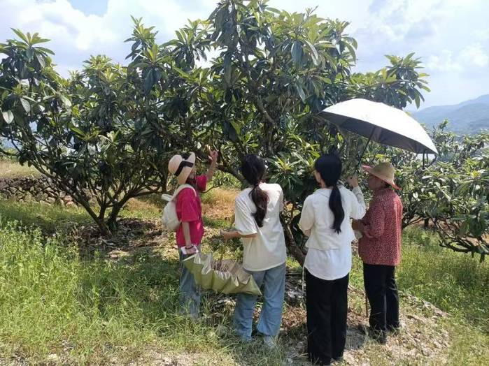 活动期间,成员们深入田间地头,先是对枇杷的长势进行了观察,并学习了农作物的有关知识。然后成员们帮助当地农户进行了农事活动,大家干劲十足,分工明确,得到了当地农户的夸赞。成员们还与当地的村委会进行交流,不仅增进了对农业活动的理解,还更加体会到农民和乡村振兴事业的不易。
