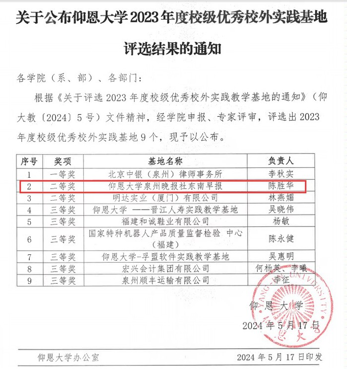 2.注重产教融合,强化专业实践能力,形成“四维育人”模式。大力开展校媒合作、校企合作、产教融合,目前已与泉州晚报社、中国网海峡频道、晋江市融媒体中心、石狮市融媒体中心、德化县融媒体中心、洛江区融媒体中心等十多家单位建立了校媒、校企合作关系。同时,依托学校学通社、校广电中心、院系新媒体平台运营小组和微信公众号“仰恩闻学苑”,为学生搭建实习实训平台,形成“课内实验+校内实训+小组实战+业界实习”的“四维育人”模式。