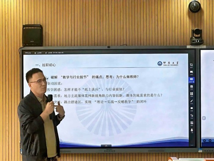 教师挂职是我校推动产学研紧密结合、促进教师队伍对接行业前沿的重要举措,旨在破解教学与产业脱节难题,将鲜活的一线经验转化为生动的教学资源。本次分享会生动展现了我校教师主动融入行业、积极更新知识结构的进取精神。四位老师的挂职经历充分证明,深入一线的实践锻炼是教师成长的有效途径,也是推动课程内容改革、强化实践教学环节的关键一环,品牌传播系将继续鼓励教师赴企业挂职学习,持续深化“双师型”教师队伍建设,为培养适应融媒体时代需求的高素质复合型传媒人才奠定坚实基础。(beat365正版唯一官网必一品牌传播系/文图)