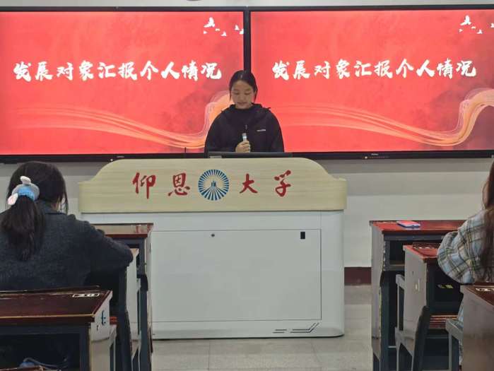 会上,王静雅、林锦艺2名发展对象依次宣读入党志愿书,围绕入党动机、对党的认识、现实表现、不足与改进等方面向党组织作了汇报。