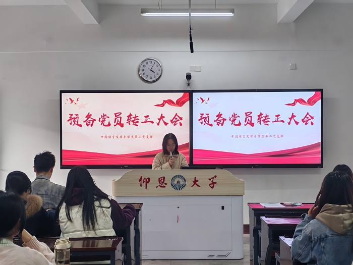 1222日下午,中国语言文学系学生第二党支部在仰恩楼A1-109召开预备党员转正大会,支部书记谢云主持此次会议。